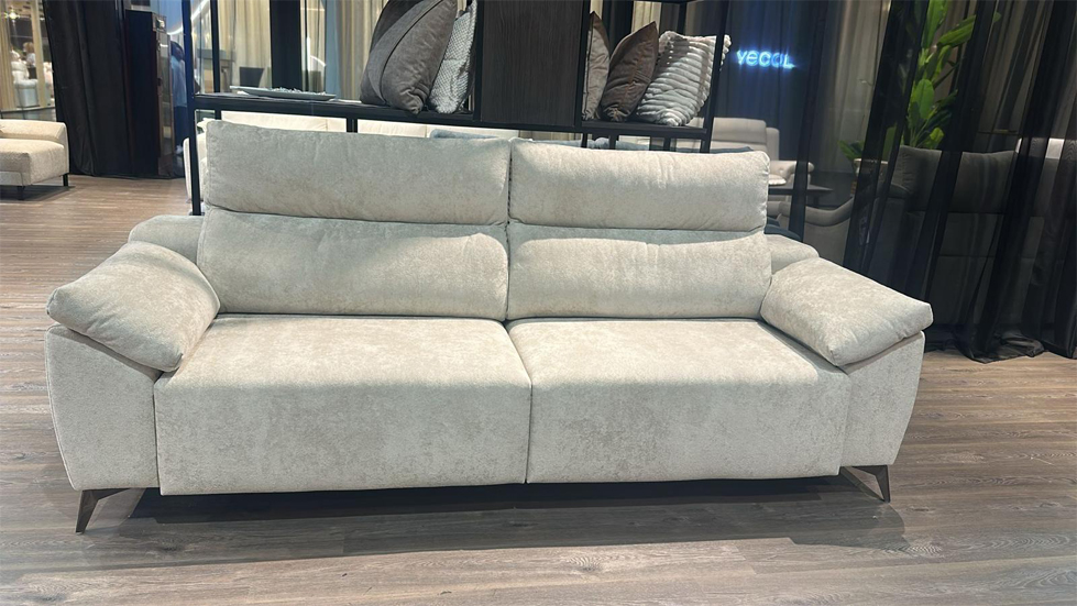 Una de las tendencia en sofás más vista en esta temporada son los sofás de dos asientos tamaño «maxi». No son de 2 ni 3 plazas, pueden ser muchas más pero manteniendo una estructura de dos asientos más anchos de lo normal (+100 cm). Esta composición es ideal para espacios un poco más reducidos en los que no se aproveche bien el espacio con un chaiselongue. Si actualmente dispones de una medida inferior a 270 cm, nuestra recomendación es que eches un vistazo a este tipo de configuración. Un modelo que está gustando mucho y que nuestros clientes se llevan en composición de 262 cm (2 asientos de 106 cm) es el modelo Ons. Tambien pudimos ver en la feria de Valencia este tipo de composiciones para muchos modelos diferentes: